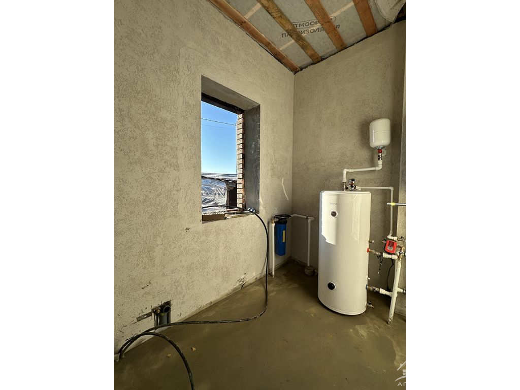Построен в одном уровне на монолитном фундаменте из газосиликатных блоков, снаружи облицован кирпичом. крыша - металлочерепица, установлены пластиковые окна и входная металлическая дверь.