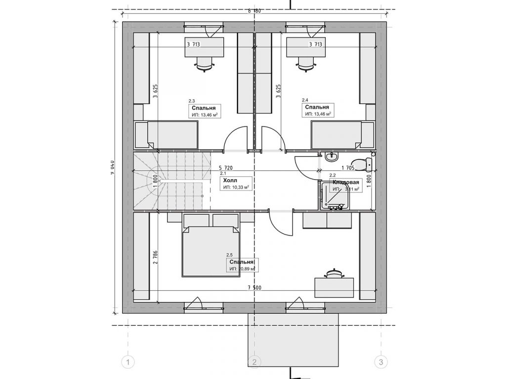 2 этаж: три жилые комнаты, с/у.