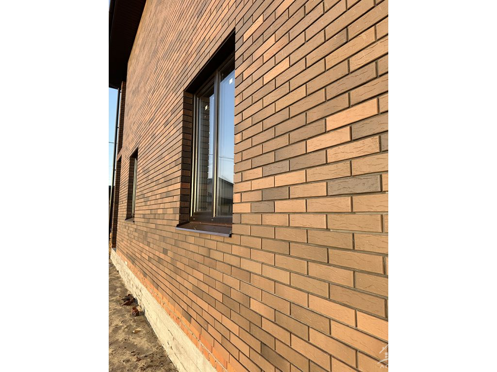 Монолитный фундамент. Стены из газосиликатных блоков марки D500, снаружи облицован кирпичом 'Баварская кладка'.