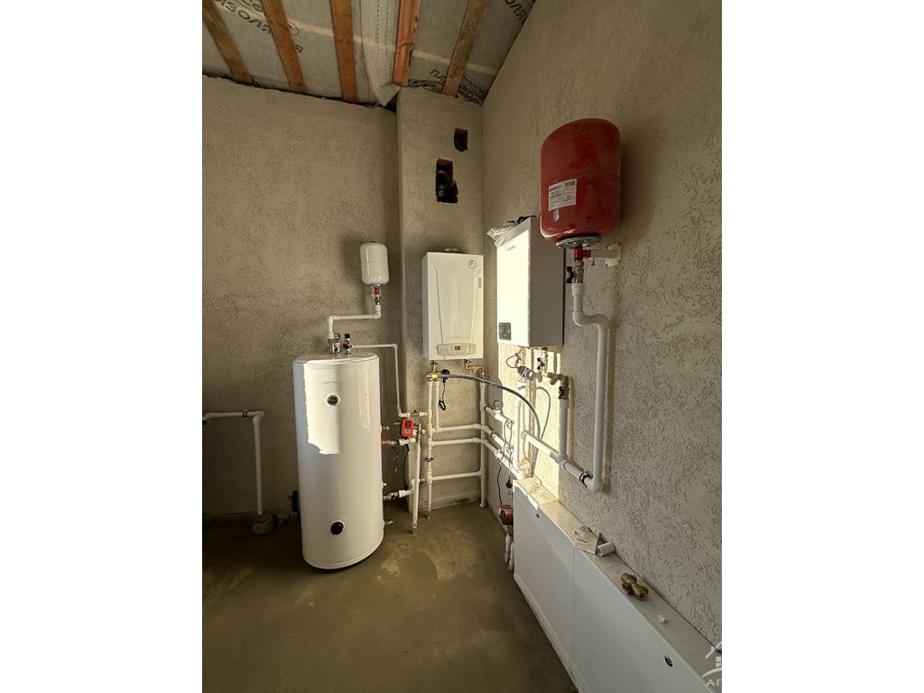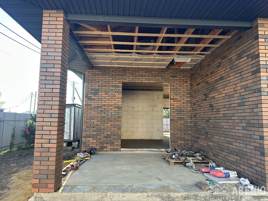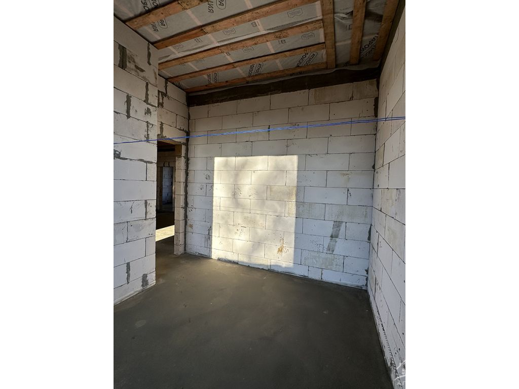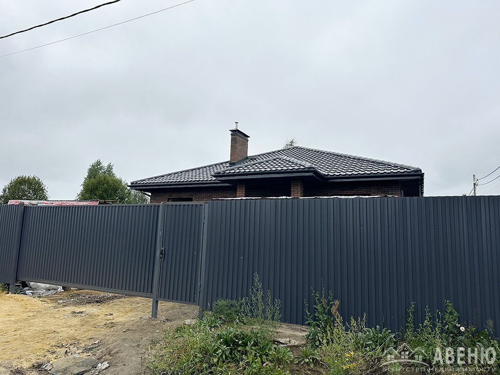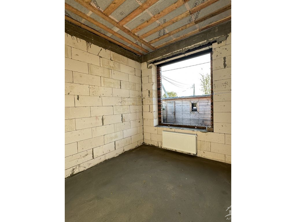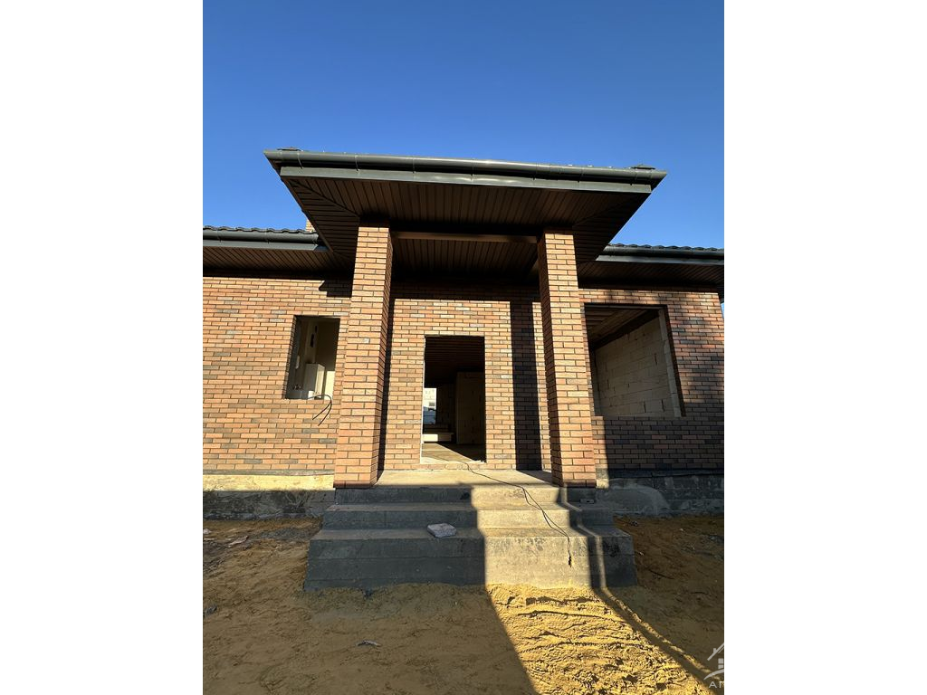 Построен в одном уровне на монолитном фундаменте из газосиликатных блоков, снаружи облицован кирпичом. крыша - металлочерепица, установлены пластиковые окна и входная металлическая дверь.